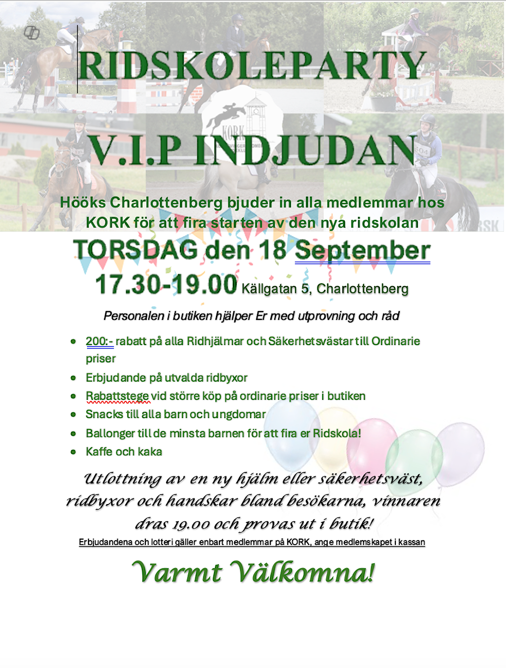 VIP tilbud til klubbens medlemmer i forbindelse med rideskolestart